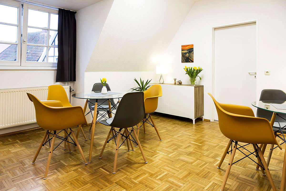 Unser Haus bietet 30 schöne, im Jahre 2019 renovierte, altengerechte Wohnungen und Zimmer zur Einzelnutzung. Die Zimmer und Apartments sind zwischen 20 qm und 30 qm groß. Aufgrund der überschaubaren Größe besitzt das Haus einen familiären Charakter.